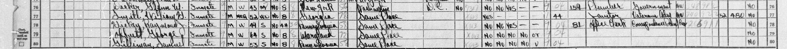 1940 Federal Census; Bath, Steuben County, New York. Lists George W. Offutt in the Veterans Administration Facility