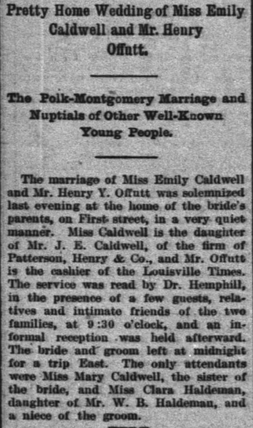 Wedding of Miss Emily Caldwell and Mr. Henry Offutt