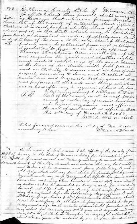 Will of Eli Offutt, page 548