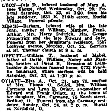 Printed in the October 23, 1926 edition of the Cleveland Plain Dealer on page 20