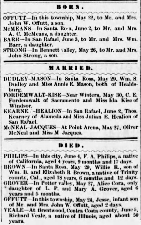 Birth and death of Jesse Offutt