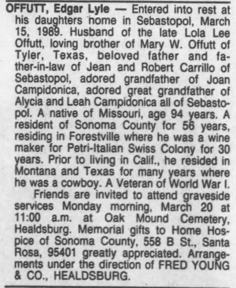 Printed in the Saturday, March 18, 1989 edition of The Press Democrat on page B2