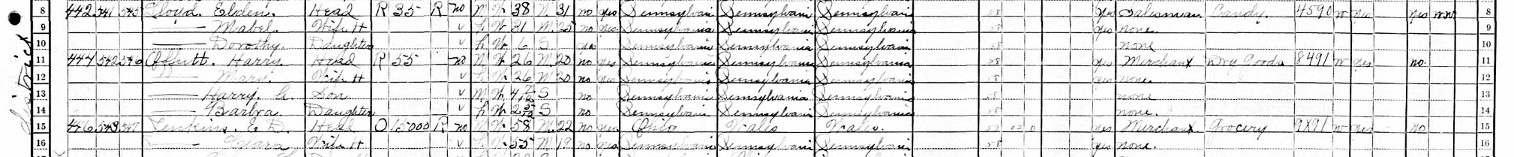 1930 PA Federal Census, Butler, Butler County. Household of Harry Offutt