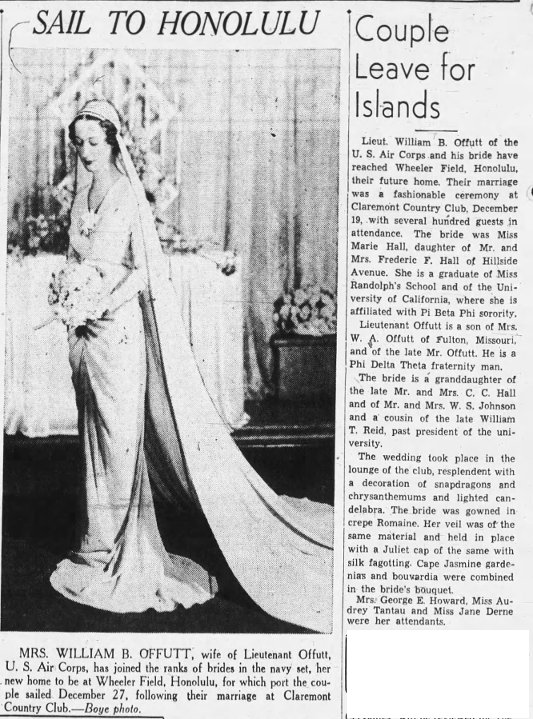 Wedding of Lieut. William B. Offutt and Miss Marie Hall