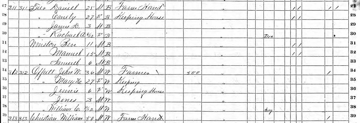 1870 Federal Census of Morganfield, Union County, KY. Household of John W. Offutt