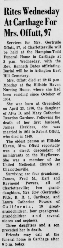 Funeral Notice for Mrs. Gertrude Offutt