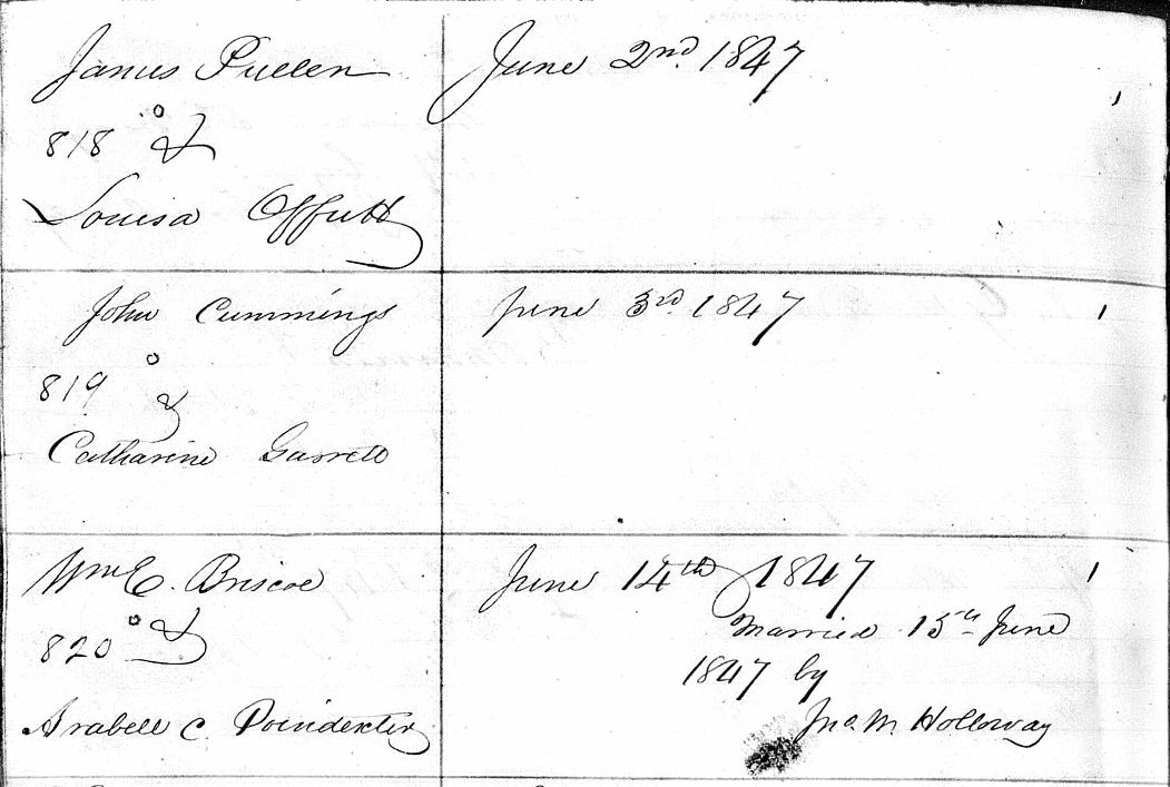 Marriage 818; James Pullen to Louisa Offutt, June 2, 1847