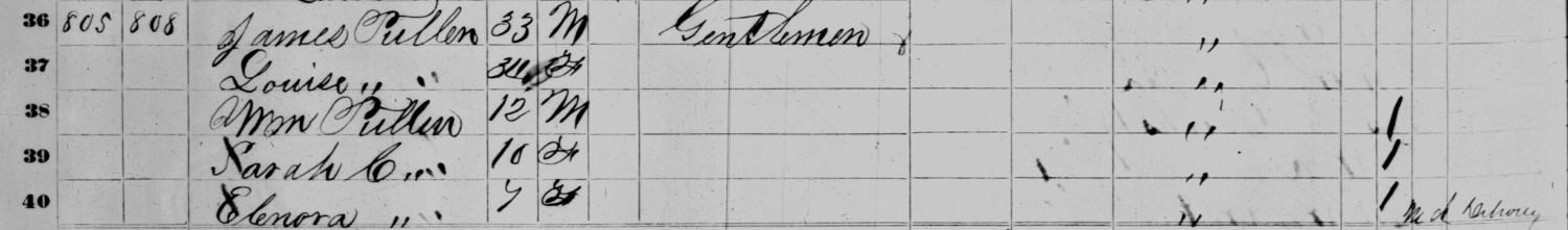 1860 Federal Census of District No. 1, Scott County, KY. Household of James Pullen