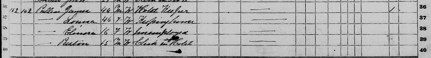1870 Federal Census of Georgetown, Scott County, KY. Household of James Pullen