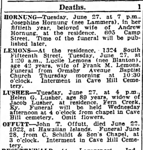 Printed in the June 28, 1922 edition of The Courier-Journal on page 12