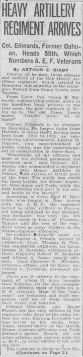 Arrival of Heavy Artillery Regiment, page 1