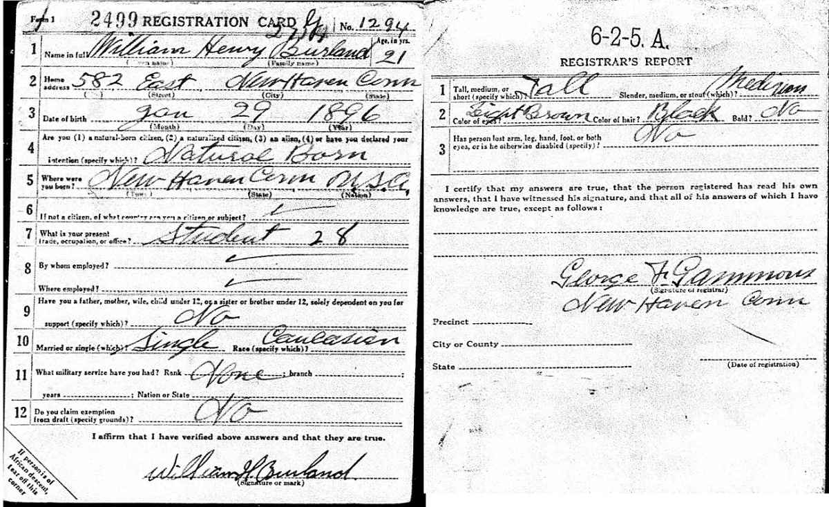 World War I Draft Registration; William H. Burland