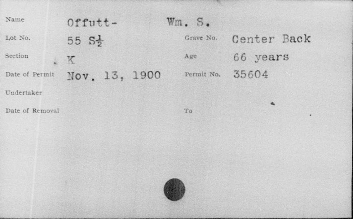 Burial Card for Wm. S. Offutt