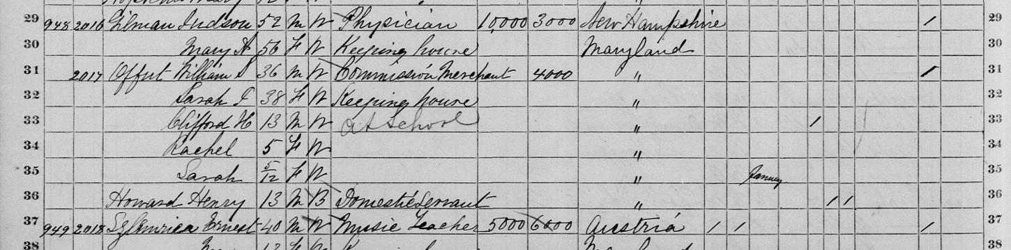 1870 Federal Census; 10th Ward, Baltimore City, MD. Household of William S. Offut (As listed)