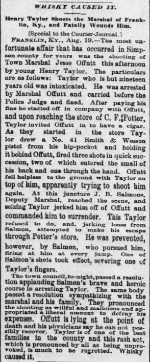 Printed in the Wednesday, August 20, 1884 edition of The Courier-Journal, Louisville, KY on page 5