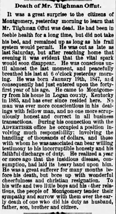 Death of Tilghman Offutt