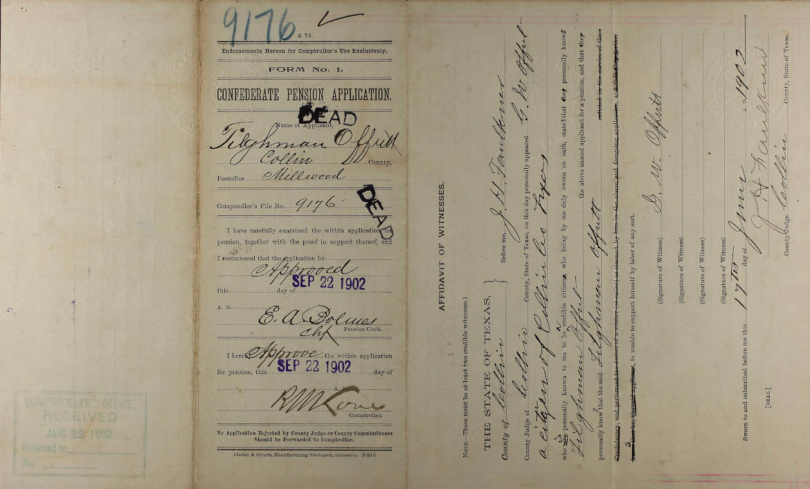 Tilghman Offutt; Collin County; File 9176; Approved September 22, 1902