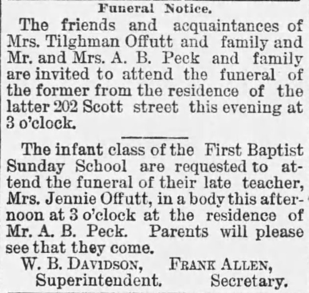 Funeral Notice for Mrs. Jennie Offutt