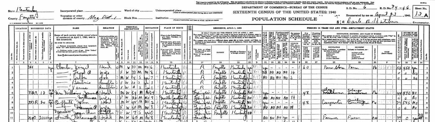 1940 Federal Census for the Mag. District 1, Fayette County, Kentucky