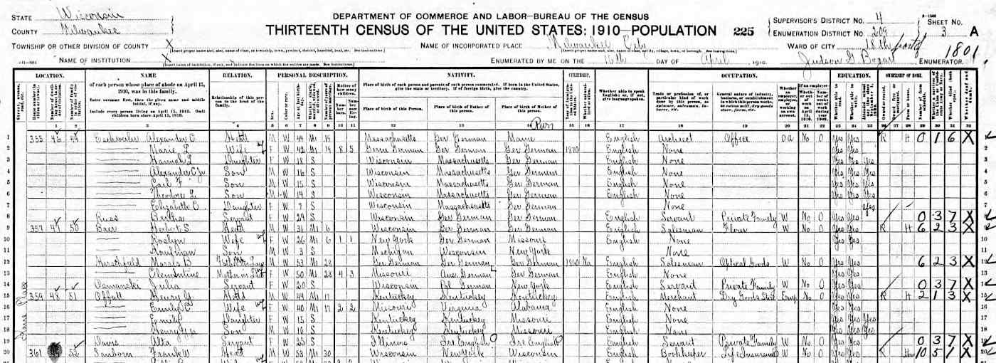 1910 Federal Census for the 18th Ward, Milwaukee City, Milwaukee County, WI