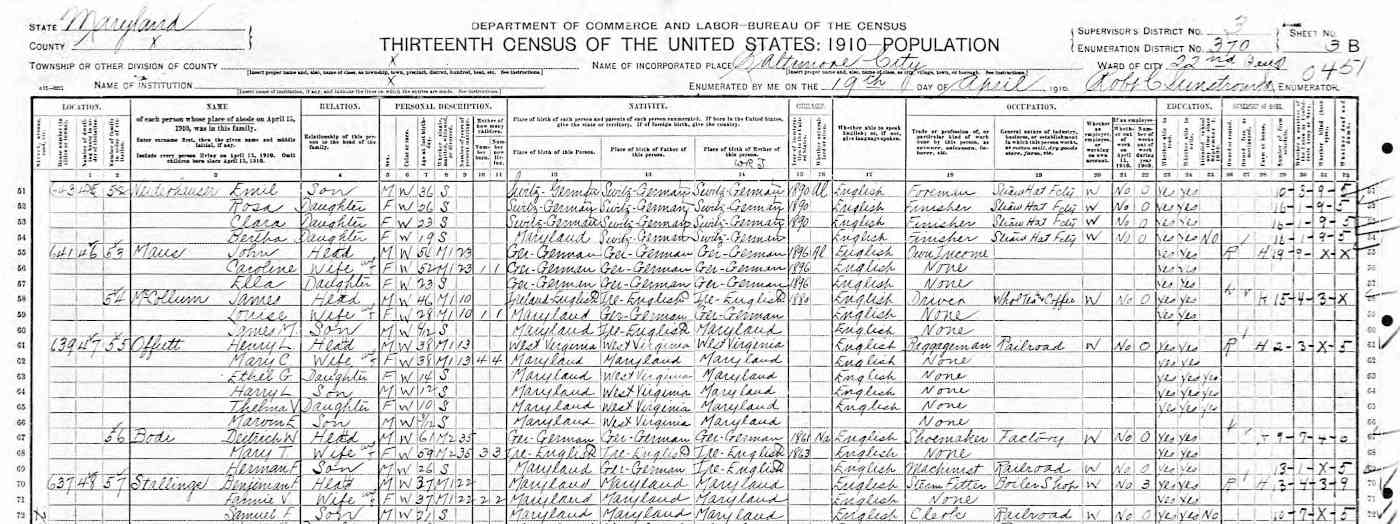 1910 Federal Census for the 22nd Ward, Baltimore City, MD