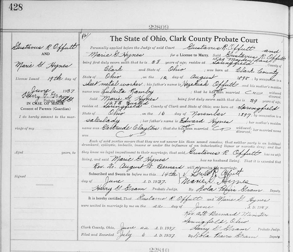 Groom Gustavus R. Offutt, Bride Marie G. Hynes