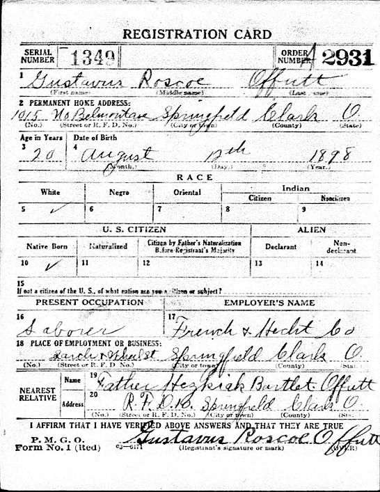 World War I Draft Registration; Gustavus Roscoe Offutt