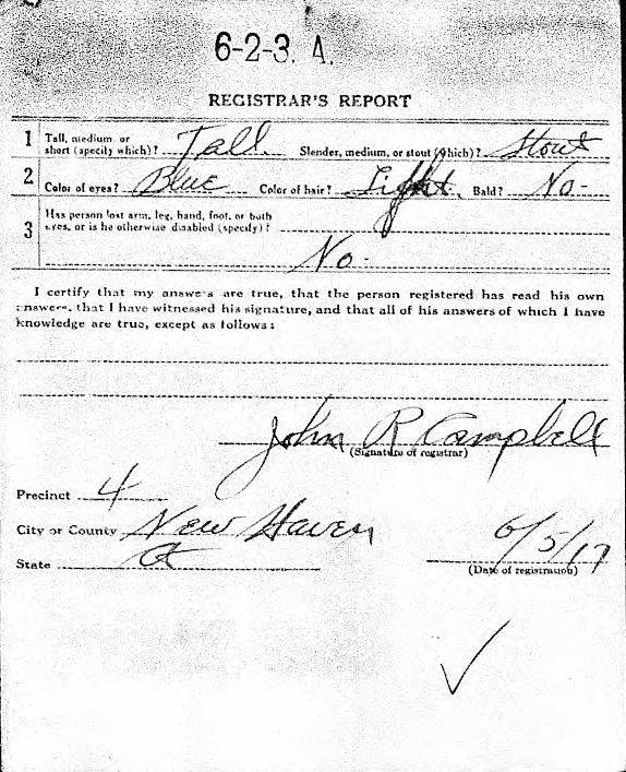 World War I Draft Registration; John J. Burland (Back of Card)
