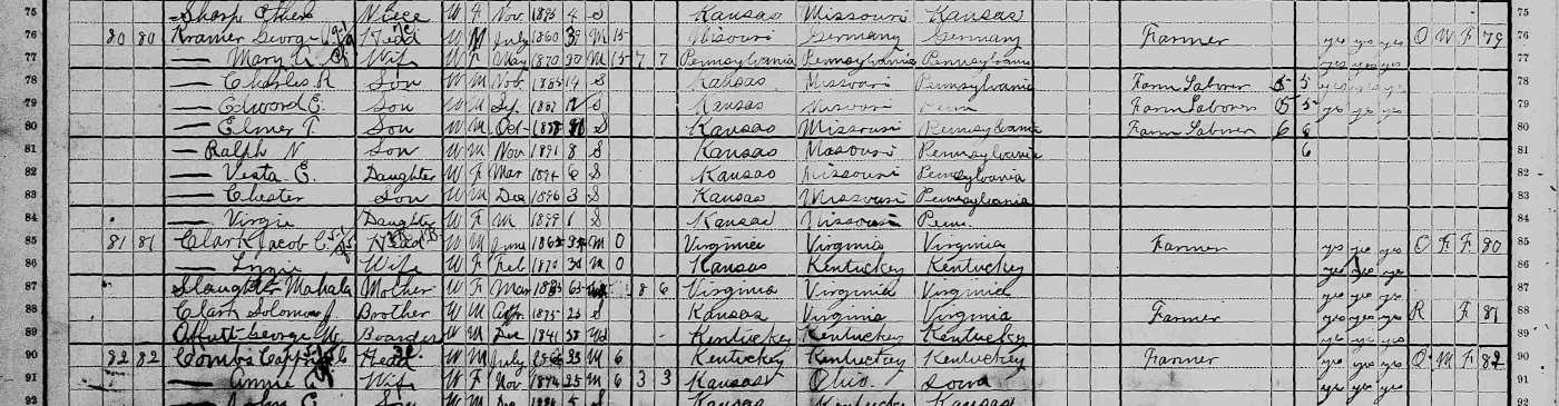 1900 Federal Census; Star Township, Coffey County, KS. George W. Offutt in the household of Jacob Clark