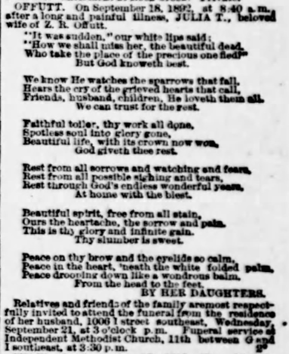 Printed in the Tuesday, September 20, 1892 edition of the Evening Star on page 3