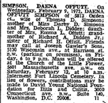 Printed in the Friday, February 11, 1972 edition of The Evening Star on page B-7