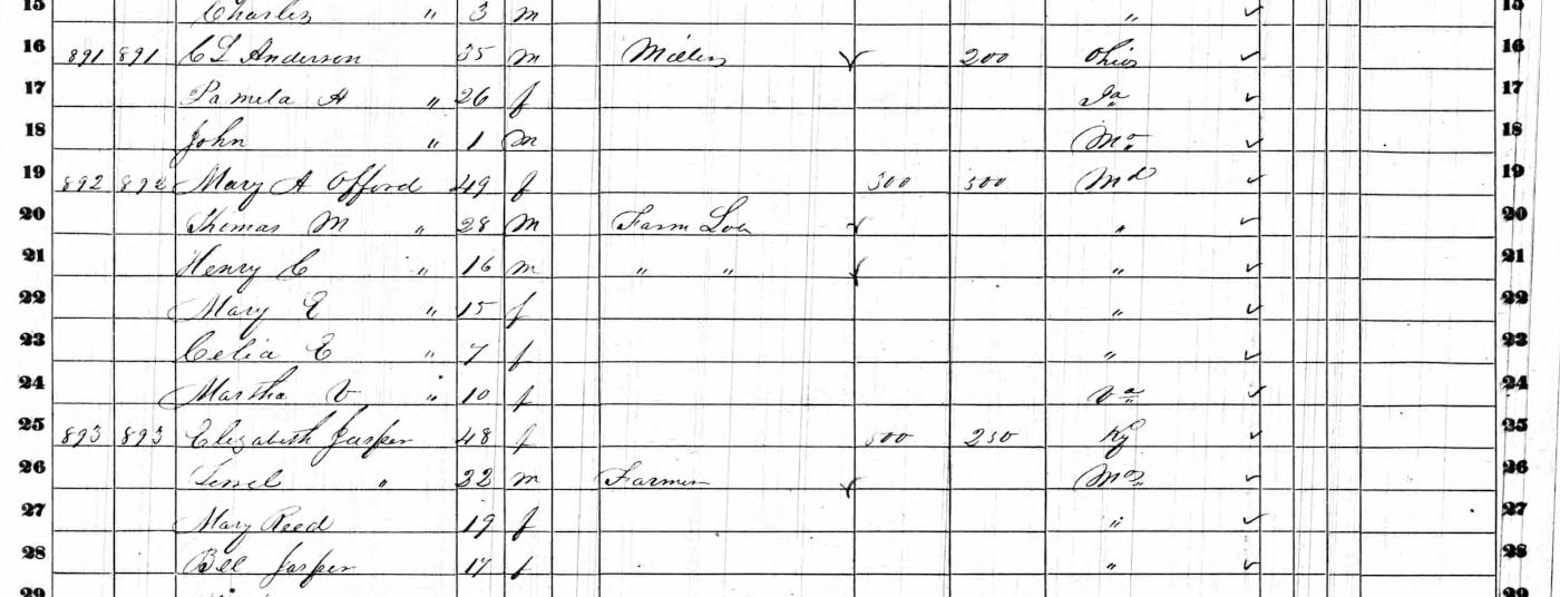 1860 Federal Census; Forest City, Holt Cty., MO. Household of Mary A. Offord