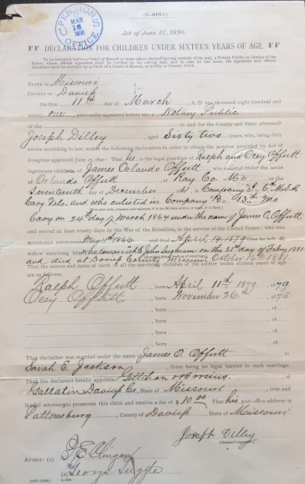 Minors Declaration for children of James Orlando Offutt and Sarah Jackson