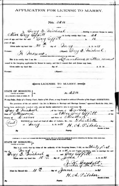 Marriage of Ocey Offitt and Orrey E. Michael
