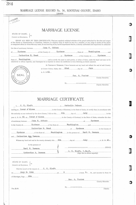 Kootenai County, Idaho Marriage Records