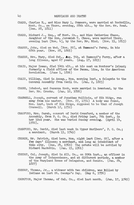 Marriages and Deaths from the Maryland Gazette 1727-1839 Page 40