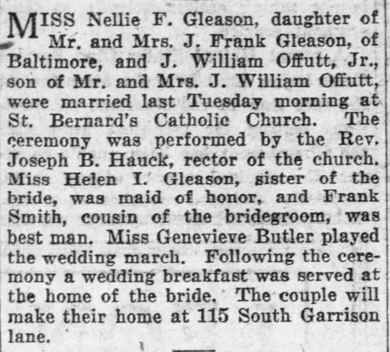 Wedding of Miss Nellie F. Gleason and J. William Offutt Jr.