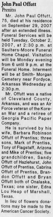 Printed in the Monday, October 1, 2007 edition of the The Clarion-Ledger on page 4B