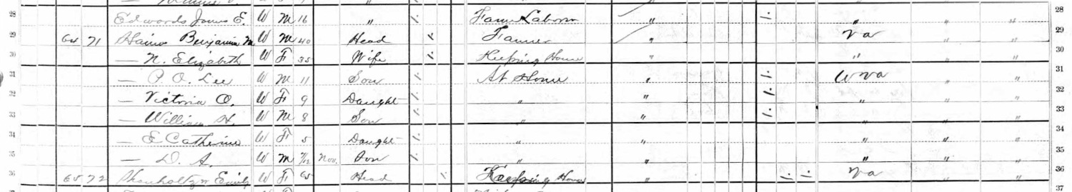 1880 Federal Census of Gore District, Hampshire County, WV. Household of Benjamin M. Haines