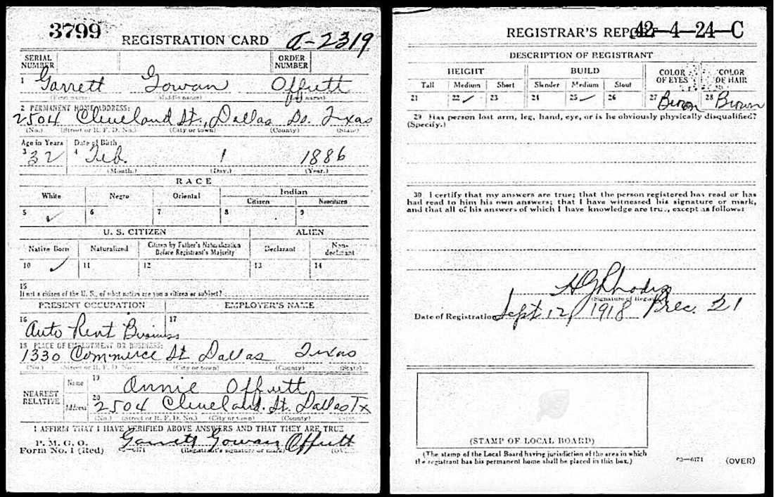 World War I Draft Registration; Garrett Gowan Offutt