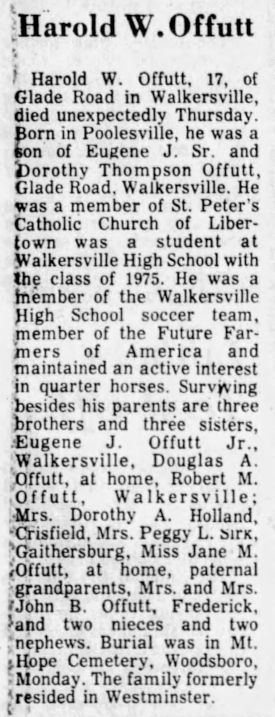 Printed in the Thursday, June 27, 1974 edition of The Evening Sun (Hanover, PA) on page M-2