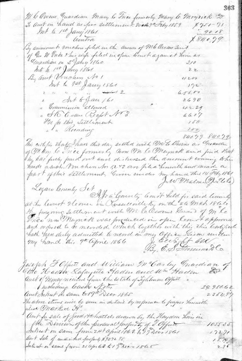 Logan County Kentucky Guardian Book C 1852 - 1867, Page 363