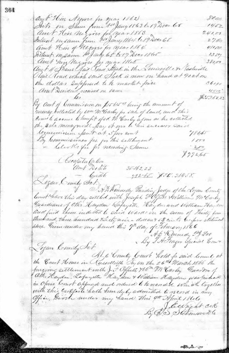 Logan County Kentucky Guardian Book C 1852 - 1867, Page 364