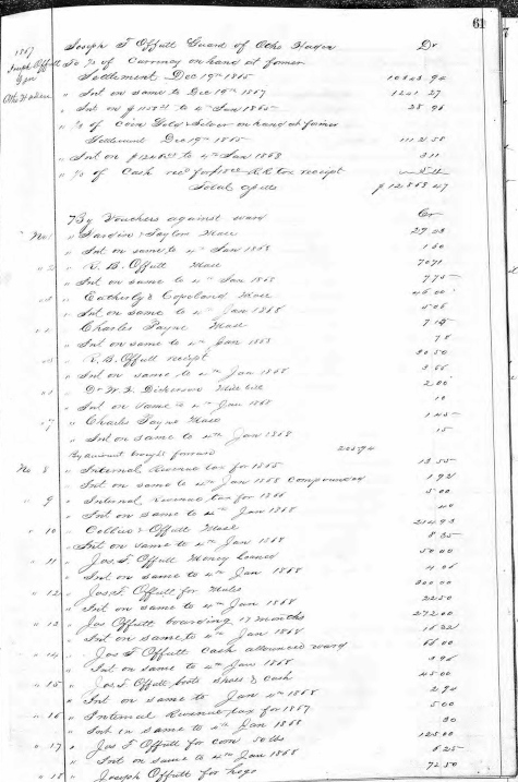 Lists accounting of funds for Joseph F. Offutt, Guardian of Otho Haden