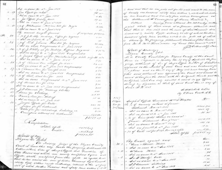 Logan County Kentucky Guardian Book D 1867 - 1874, Page 62 - 63