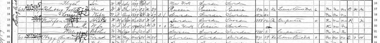 1900 Federal Census; Jamestown, Chautauqua County, NY. Household of Henning Gustafson
