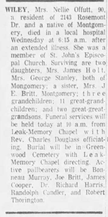 Obituary for Nellie Offutt Wiley
