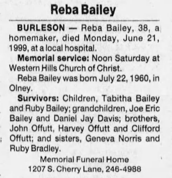 Printed in the Friday, June 25, 1999 edition of the Fort Worth Star-Telegram on page 7B.