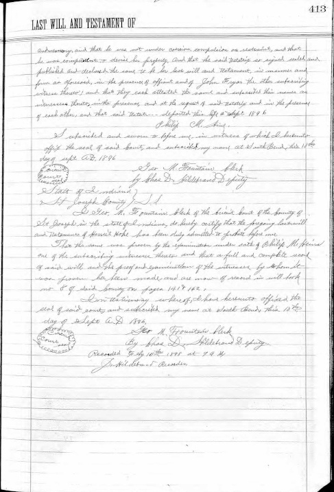 St. Joseph County Indiana Record of Wills Book 1 Page 413