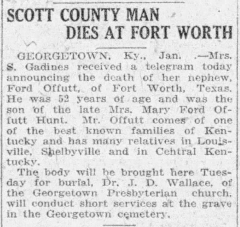 Printed in the Monday, January 6, 1919 edition of The Lexington Herald on page 12